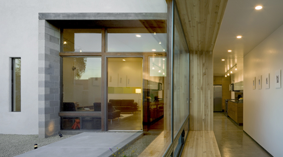 Six is a series of six 3bed/3bath single family homes in central Tucson. Each home is wrapped around a private central courtyard, with the interior spaces opening into the courtyard that provides light as well as privacy between rooms. The homes boast plenty of storage, a 2-car garage, outdoor barbeque, open modern kitchen and beautifully spaced bedrooms each with a private bath. The combination of plastered block walls, colored concrete, glass, steel, aluminum and wood blend together to create a modern, durable and desert appropriate dwelling that feels truly like a retreat in the center of the city.