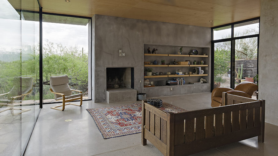 Functionality meets the environment through strategically placed operable openings that encourage natural ventilation. This design choice fosters a direct, sensory connection to the outdoors—where the sound of the wind and the scent of creosote become an integral part of the daily living experience.